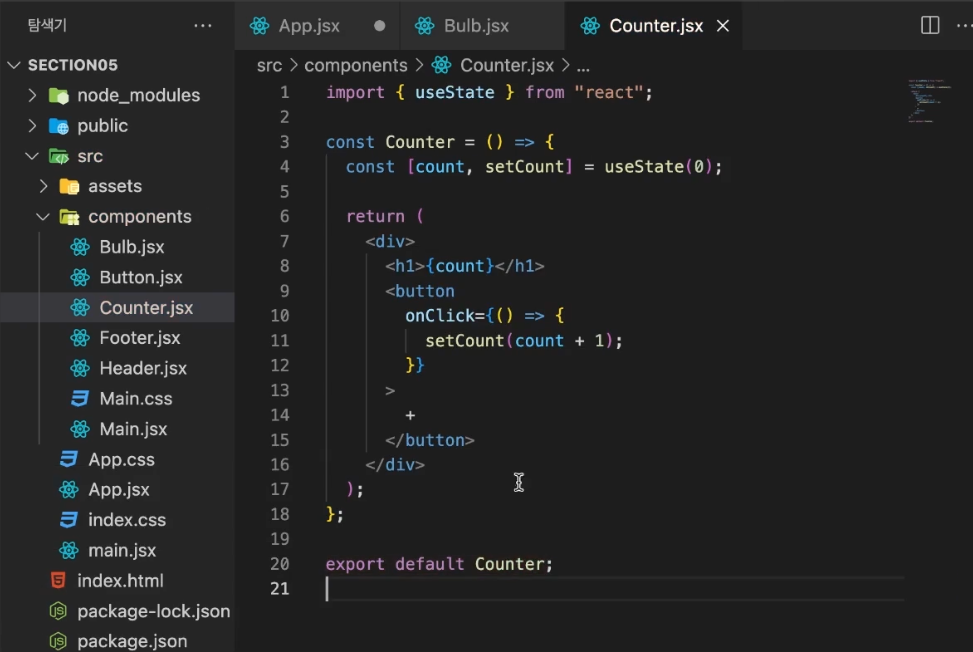 모듈화를 위해 컴포넌트별로 파일을 각각 나눠서 작성