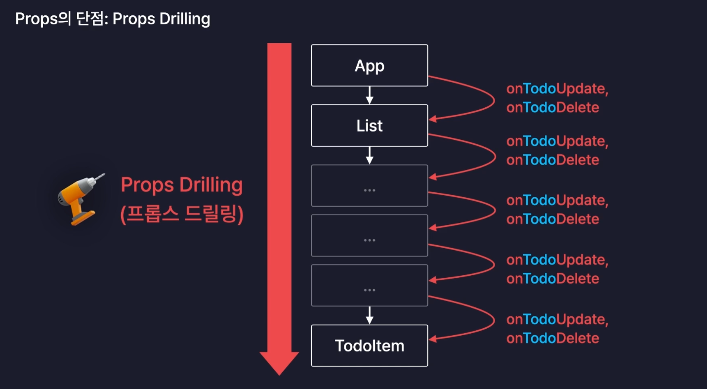 props를 계층구조상에서 B까지 전달하려면 A한테 주고 A한테서 받는 형태로 진행했어야했음