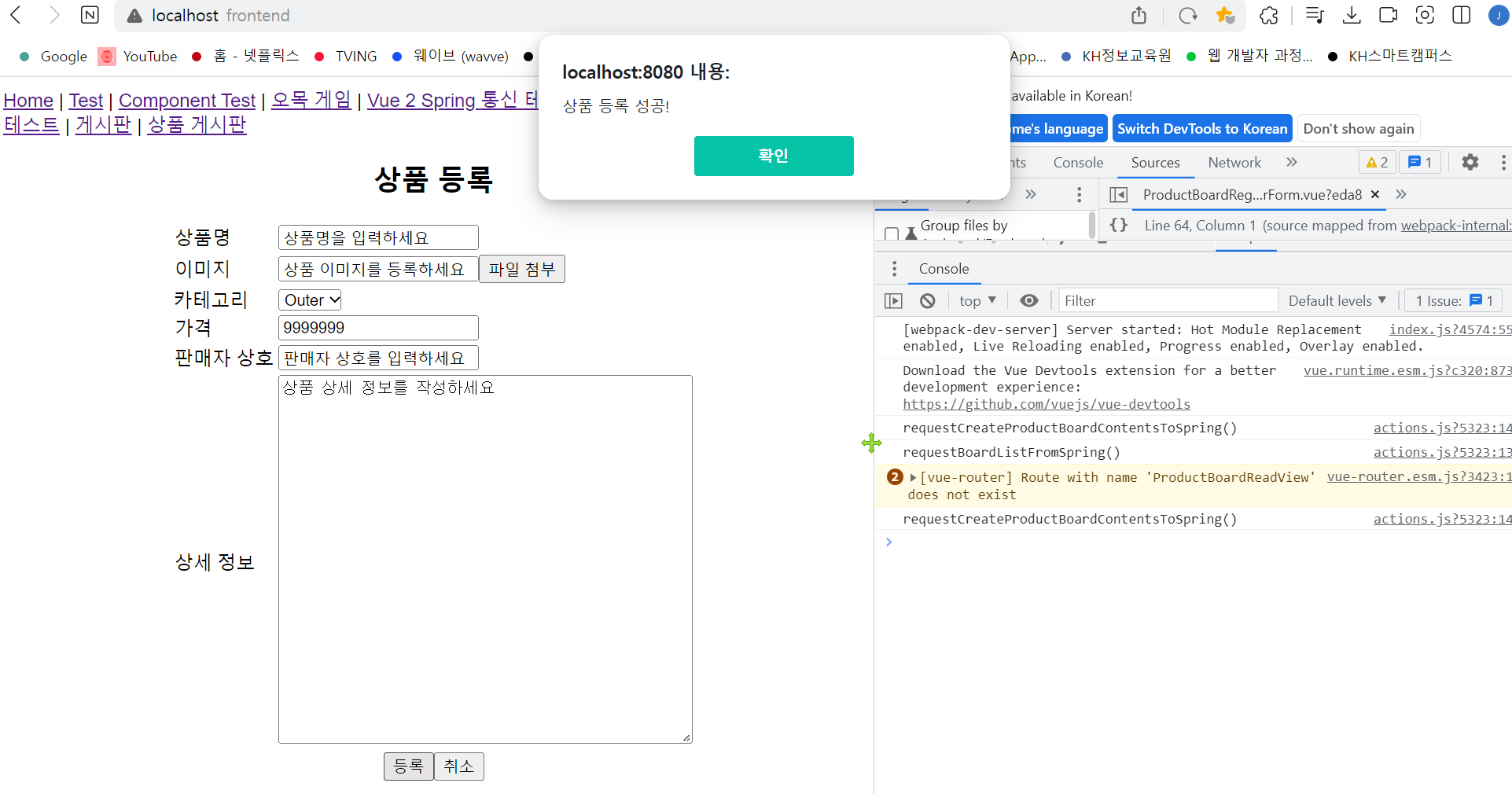 Vue에서 Spring 서버로 입력받은 데이터를 전송하려고 하는데 이런 에러 메세지가 떴다.