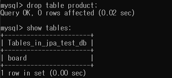 이렇게 테이블을 삭제했다가 Spring 서버를 재구동 해줬다.